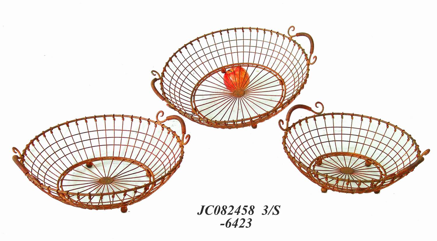 DESCRIPTION: Decorative Rustic Wrought Iron Metal Outdoor Patio. S/3 FRUIT TRAY